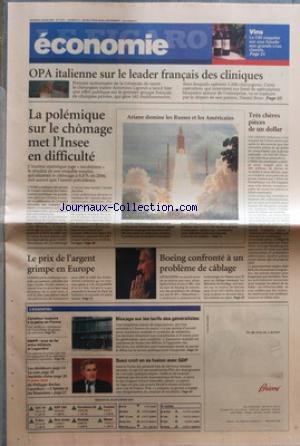 Read FIGARO ECONOMIE (LE) [No 19471] du 09/03/2007 - OPA ITALIENNE SUR LE LEADER FRANCAIS DES CLINIQUES - LA POLEMIQUE SUR LE CHOMAGE MET L'INSEE EN DIFFICULTE - ARIANE DOMINE LES RUSSES ET LES AMERICAINS - TRES CHERES PIECES DE UN DOLLAR - LE PRIX DE L'ARGENT GRIMPE EN EUROPE - BOEING CONFRONTE A UN PROBLEME DE CABLAGE - ENQUETE SUR UNE FRAUDE AUX GRANDS CRUS CLASSES PDF